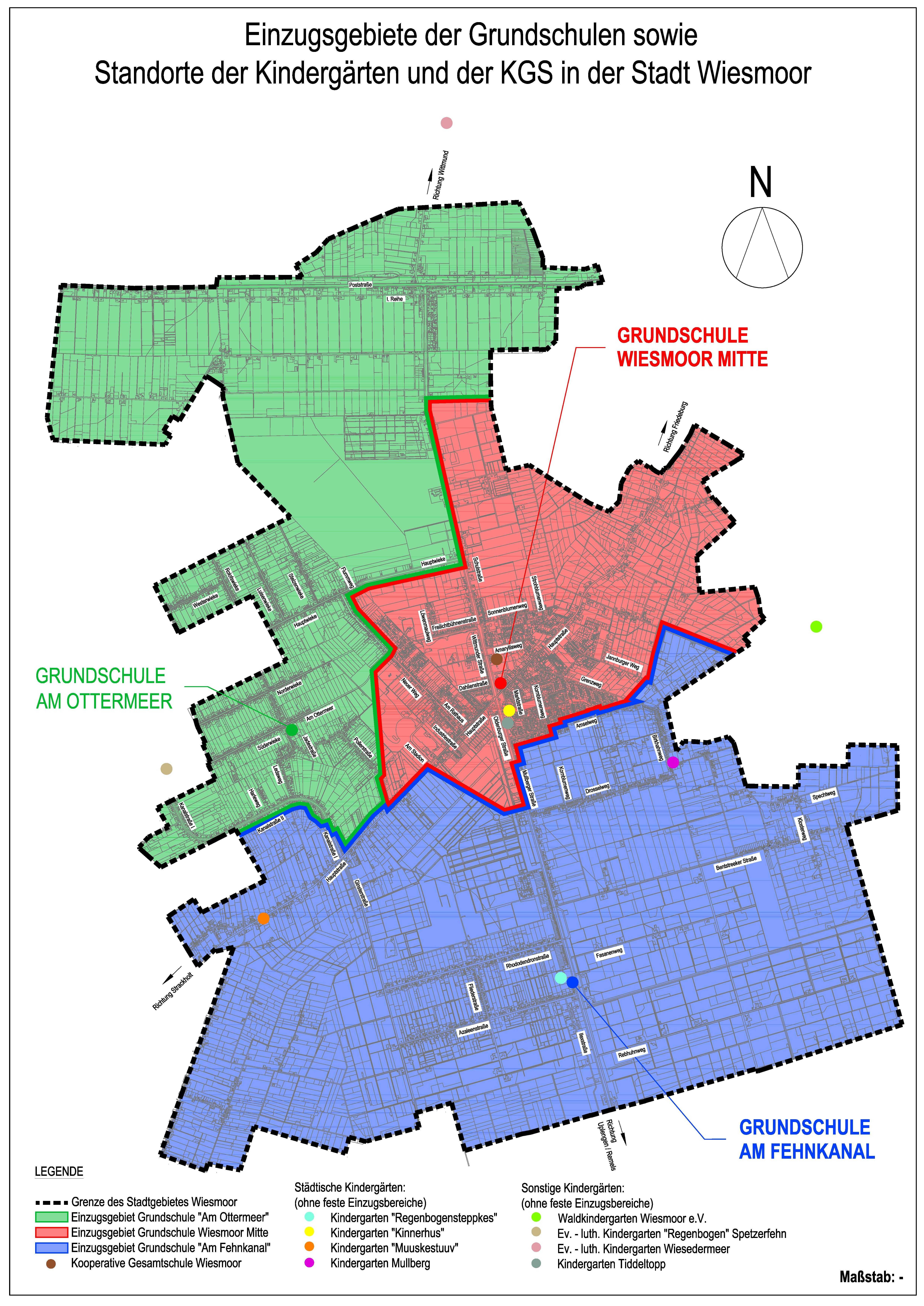 Im Folgenden stellen wir Ihnen eine Übersichtskarte über die Standorte der Kindertagesstätten im Stadtgebiet von Wiesmoor zur Verfügung.