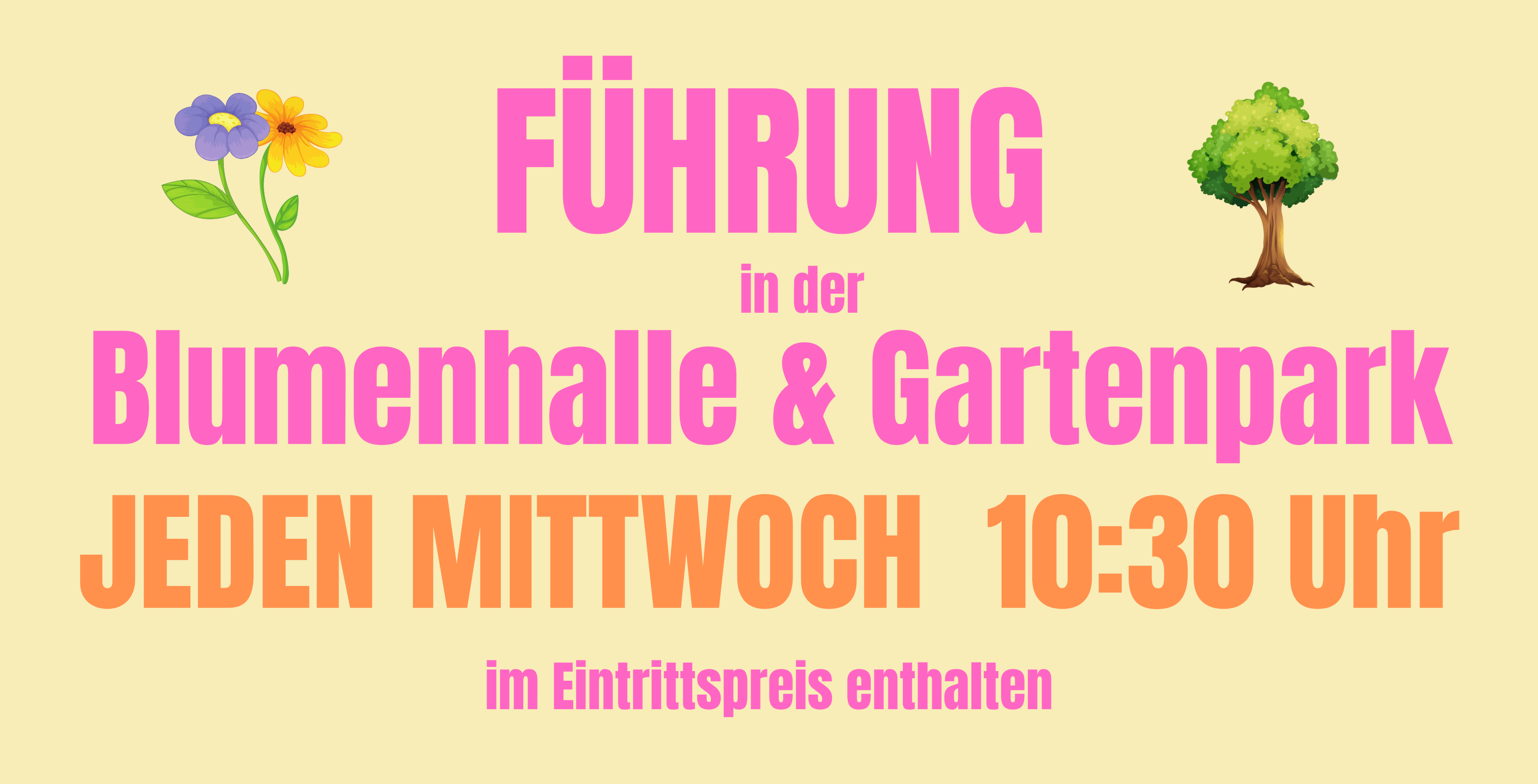 Entdeckt die schönsten Ecken unserer Blumenhalle und des Gartenparks – bei einer geführten Tour mit spannenden Einblicken in die Welt der Pflanzen.