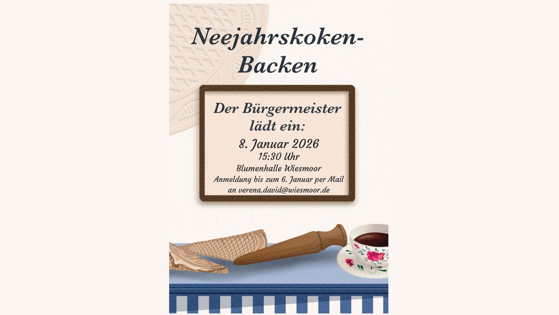Anmeldung bis 6. Januar per Mail an verena.david@wiesmoor.de