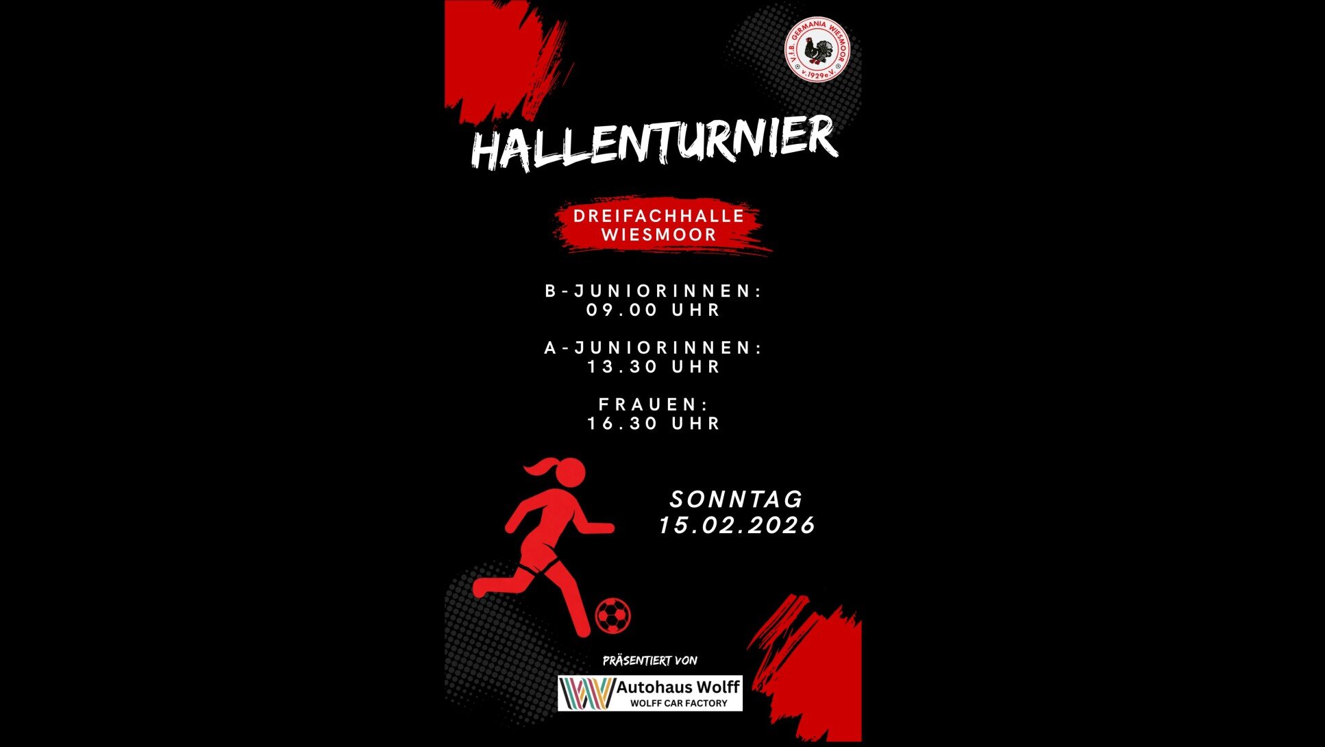 Am 15.02. ab 09.00 Uhr warten in der Dreifachhalle spannende Spiele der B-Juniorinnen, der A-Juniorinnen und der Frauen auf euch! Neben dem Platz gibt es eine durch die Mannschaften zur Verfügung gestellte Verpflegung. Der Erlös kommt den Juniorinnen und Frauen des VfB Germania Wiesmoor zugute. Der Eintritt ist kostenlos.