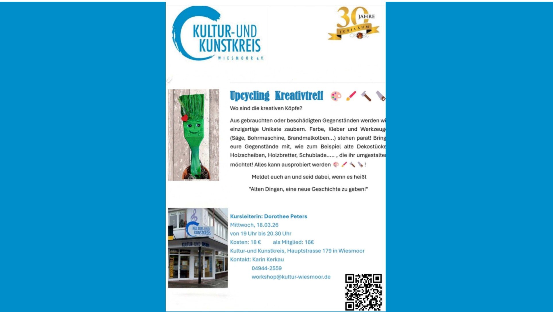 Kontakt: Karin Kerkau, 04944-2559, workshop@kultur-wiesmoor.de